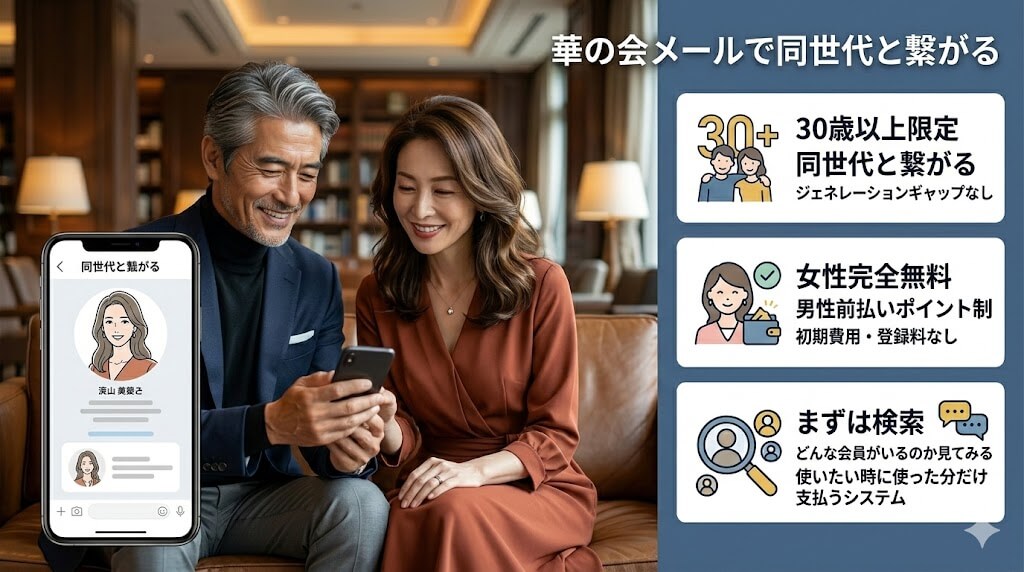 そんな30代から50代の方に密かに支持されているのが、中高年特化型マッチングサイト「華の会メール」です。